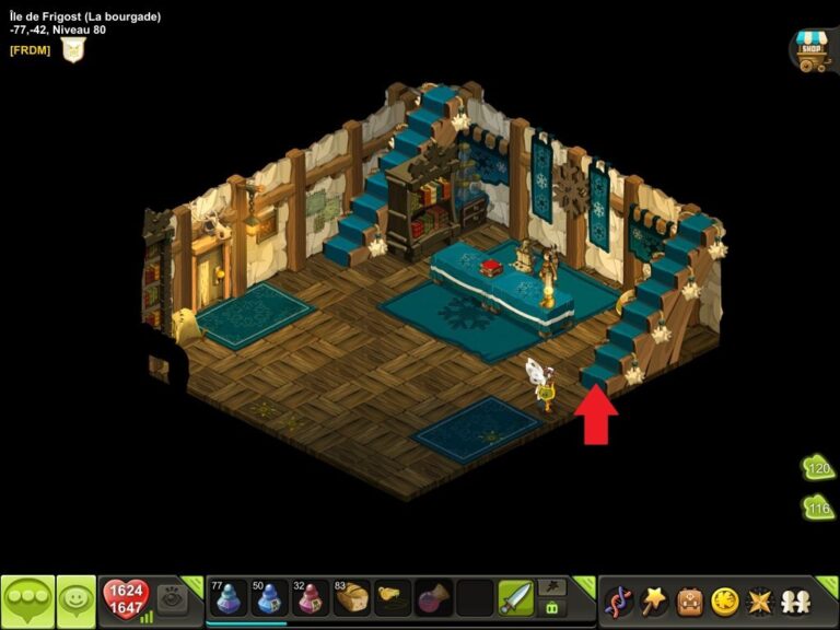 Position de lancement : La Bourgade de Frigost, en [-77,-42]